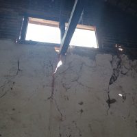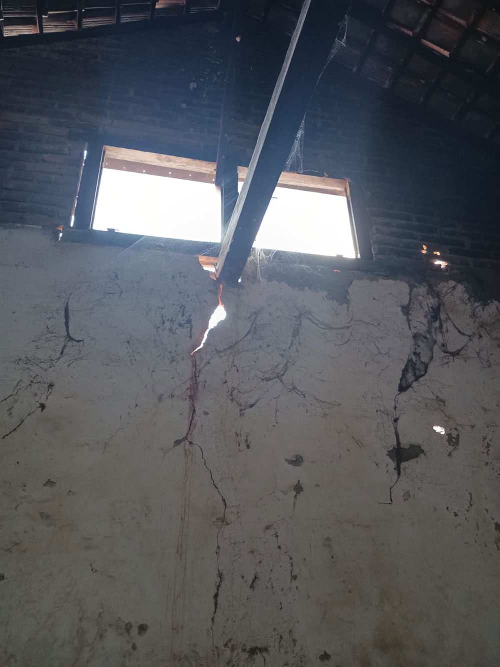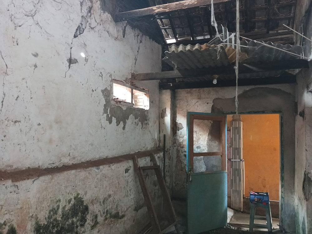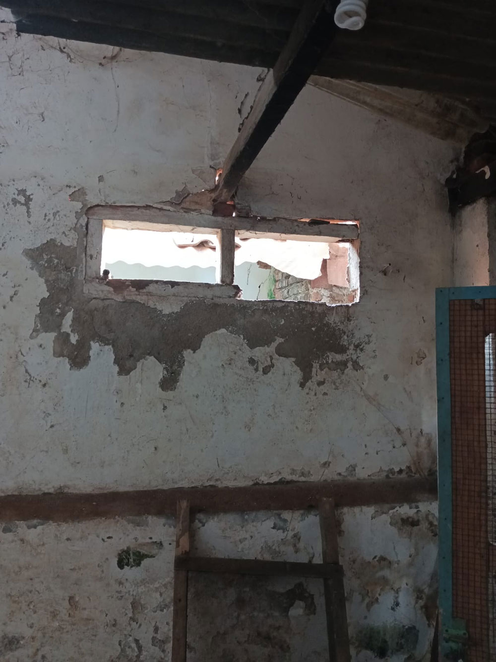 Kondisi tembok retak bahkan sudah berlubang dan gampang ambruk yang juga akan membahayakan tetangga disebelahnya. Sedangkan kondisi plapon juga sangat parah, sehingga jika hujan akan bocor.